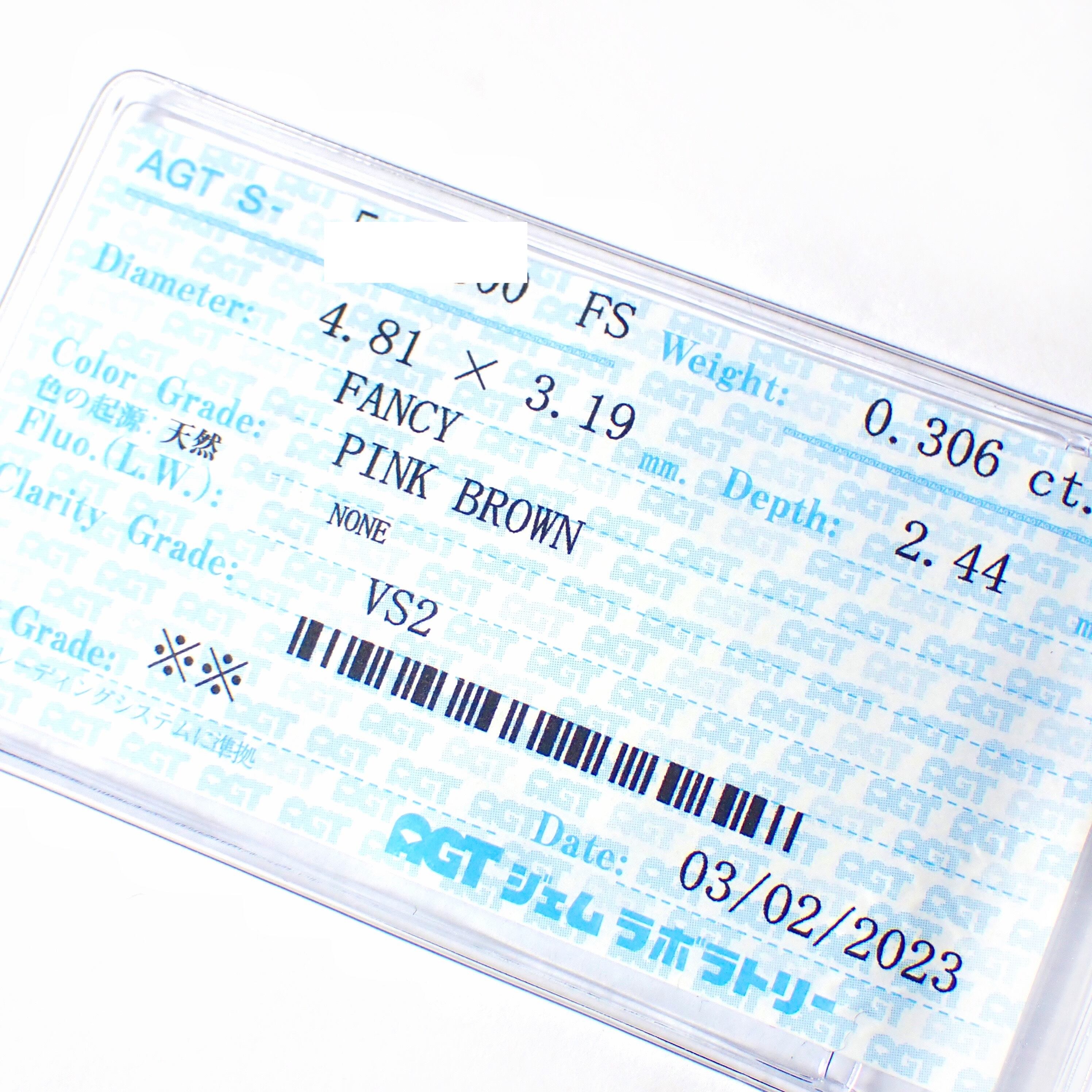 【希少】 0.306ct Fancy Pink Brown ファンシー ピンク ブラウン ピンク ダイヤモンド ルース 裸石 天然 AGTソーティング ピンクダイヤ ペアシェイプ Natural Pink Diamond Pear Shape