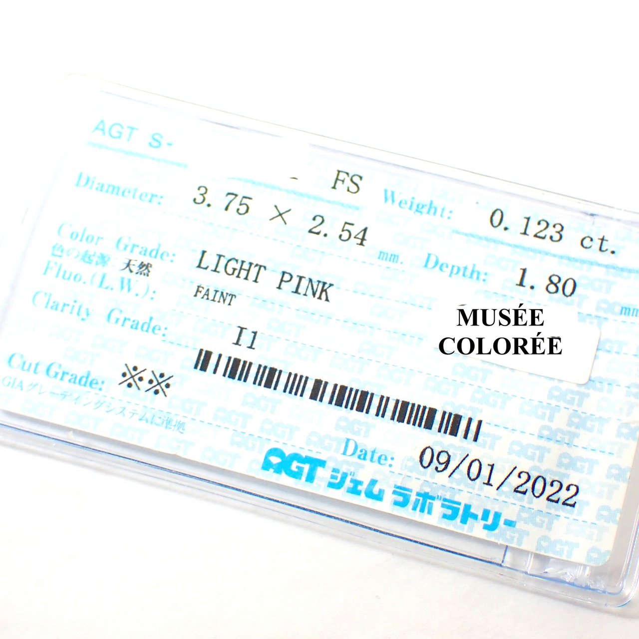 【売切れ御免】 Light Pink 0.123ct ピンクダイヤモンド ルース 裸石 天然 AGTソーティング ペアシェイプ Natural Diamond Pear Shape 0.1ct