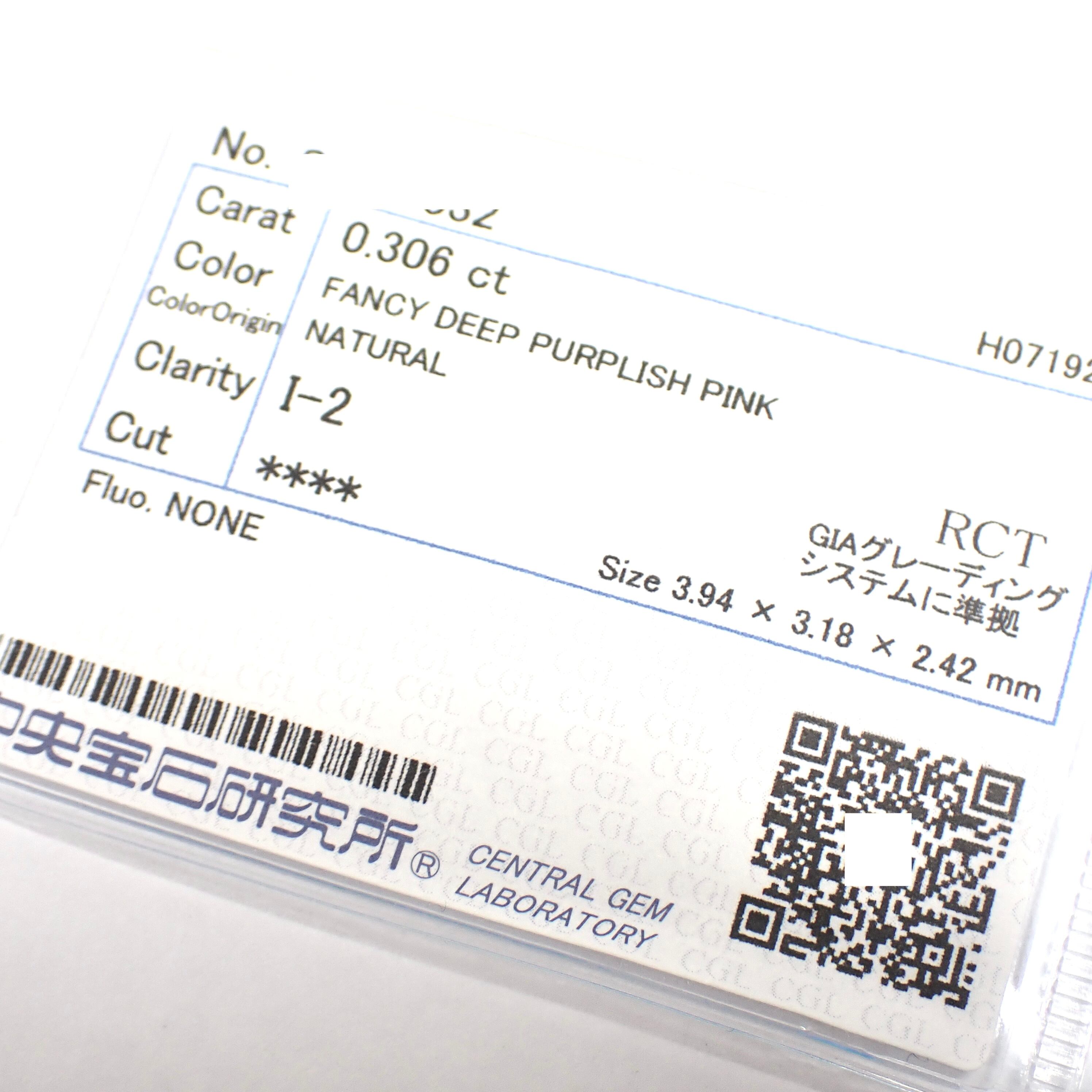 【売り切れ御免】 Fancy Deep Purplish Pink 0.306ct ファンシー ディープ パープル ピンク ダイヤモンド ルース 裸石 天然 中央宝石研究所ソーティング カットコーナー長方形 ピンクダイヤ 0.3ct Natural Pink Diamond Cut-Corner Rectangular