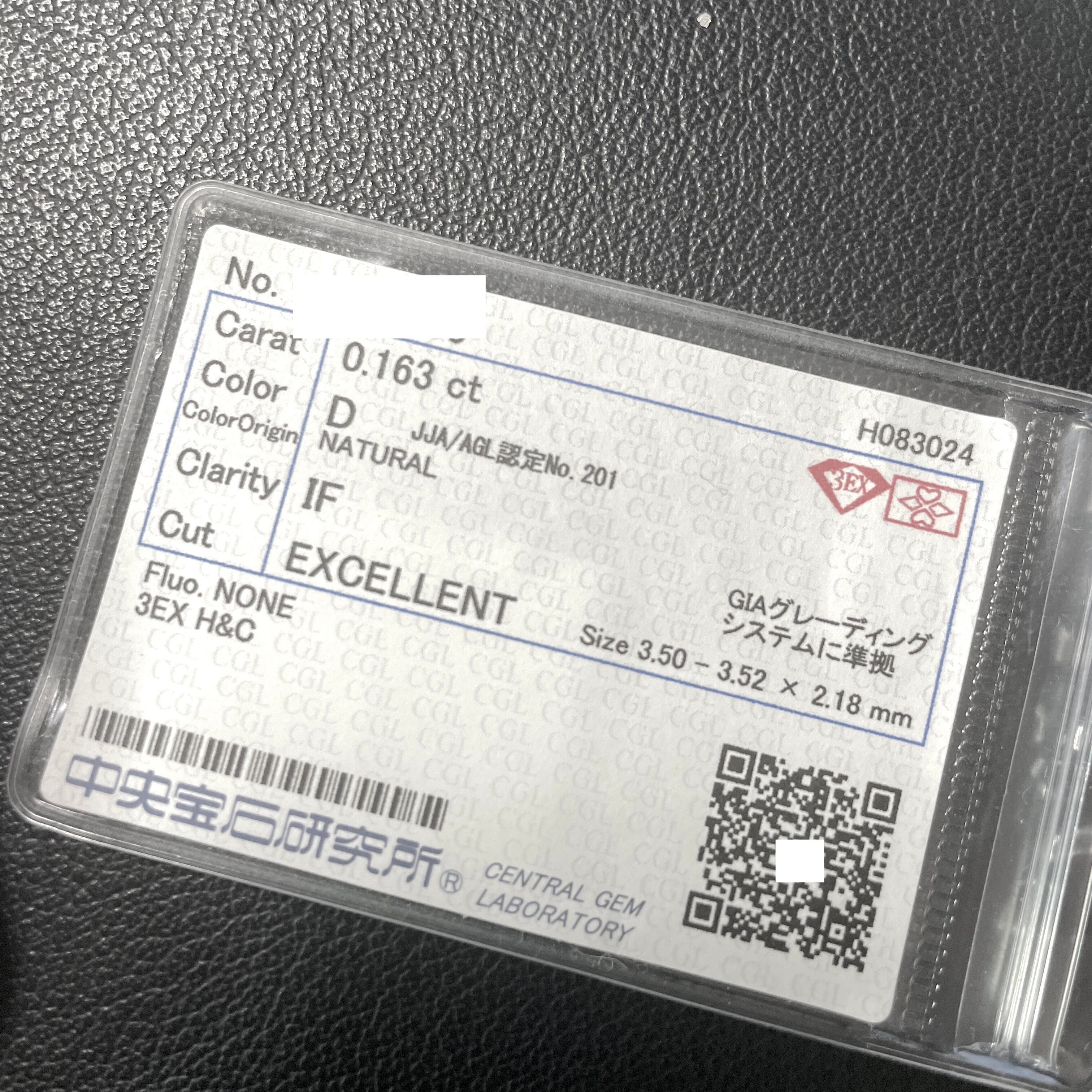 【卸売価格】0.163ct D IF 3EX H&C ダイヤモンド ルース 裸石 ダイヤ 天然 中央宝石研究所ソーティング ラウンドブリリアントダイヤモンド 0.1ct Natural Diamond Round Brilliant