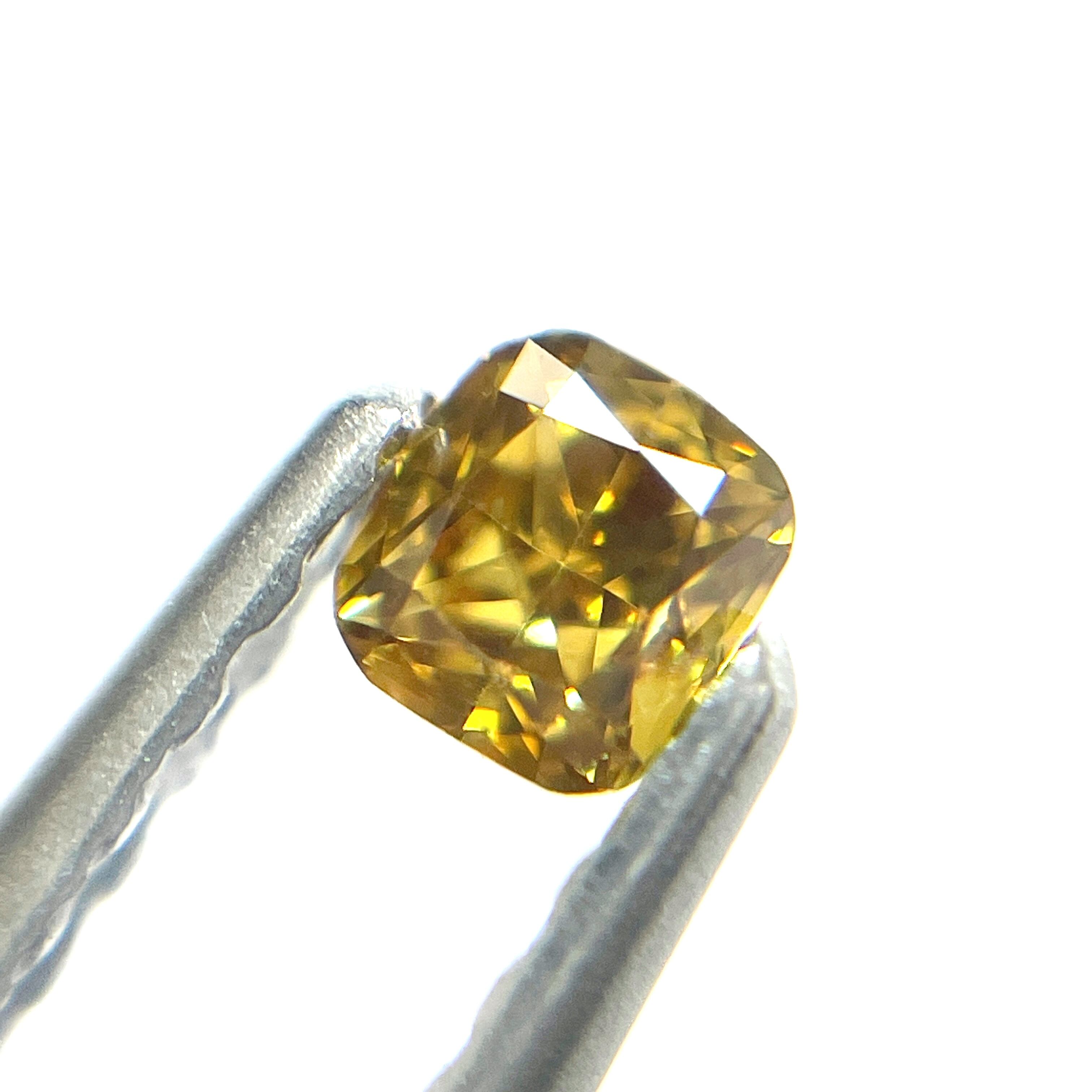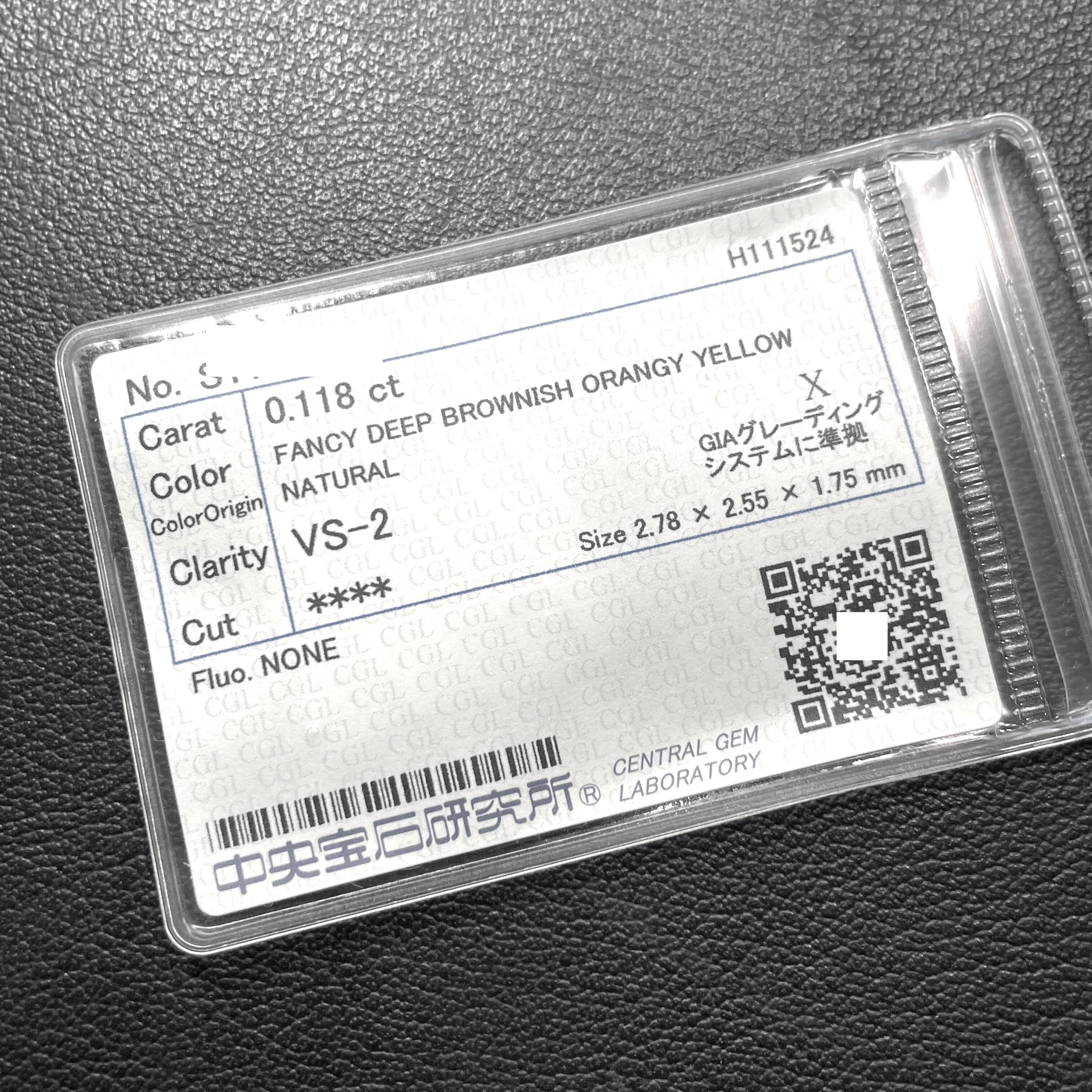 【希少】 Fancy Deep Brownish Orangy Yellow 0.118ct ファンシー ディー プ ブラウン オレンジ イエロー ダイヤモンド ルース 裸石 天然 中央宝石研究所ソーティング クッションカット Cushion Cut Yellow Diamond